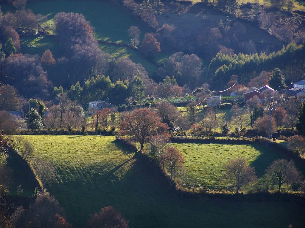 Esta etapa sigue un camino más rural y tranquilo, subiendo a través de colinas gallegas. El paisaje está lleno de prados y bosques.